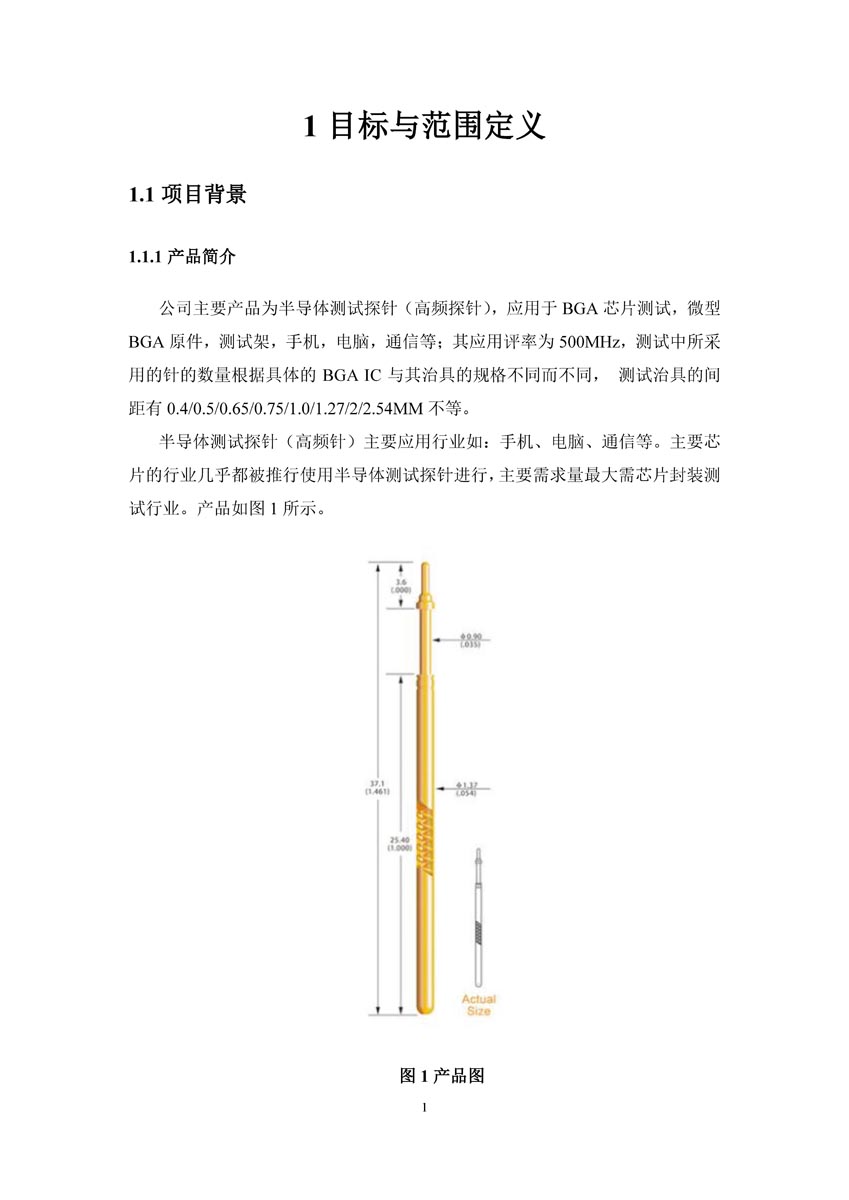 半導(dǎo)體測(cè)試探針(高頻探針)主要應(yīng)用于BGA芯片測(cè)試,微型BGA原件,測(cè)試架,手機(jī),電腦,通信等;其應(yīng)用評(píng)率為500MHz,測(cè)試中所采用的針的數(shù)量根據(jù)具體的BGAIC與其治具的規(guī)格不同而不同,測(cè)試治具的間距有0.4/0.5/0.65/0.75/1.0/1.27/2/2.54MM不等。????半導(dǎo)體測(cè)試探針(高頻針)主要應(yīng)用行業(yè)如:手機(jī)、電腦、通信等。主要芯片的行業(yè)幾乎都被推行使用半導(dǎo)體測(cè)試探針進(jìn)行,